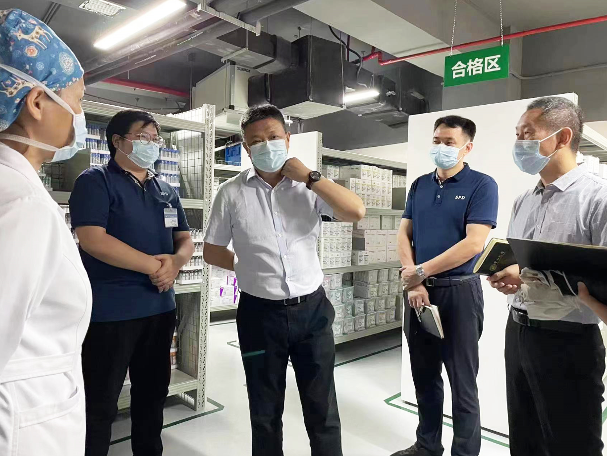 單鴻院長一行首先來到SPD中心倉庫,了解SPD項(xiàng)目的管理體系、管理目標(biāo)及管理流程,聽取了項(xiàng)目現(xiàn)階段運(yùn)營狀況,并對(duì)各項(xiàng)智能化管理數(shù)據(jù)予以了充分肯定,要求醫(yī)學(xué)裝備部每月根據(jù)SPD運(yùn)營中心提供的數(shù)據(jù)進(jìn)行成果轉(zhuǎn)換。單鴻院長表示,SPD項(xiàng)目是中大五院的重點(diǎn)管理項(xiàng)目,該項(xiàng)目根據(jù)醫(yī)藥醫(yī)用耗材實(shí)際使用情況,通過智能化手段,讓醫(yī)用耗材從購進(jìn)到消耗全流程可追溯,真正做到將醫(yī)用耗材用好管好,助力醫(yī)院智慧醫(yī)療建設(shè),提升患者服務(wù)水平。