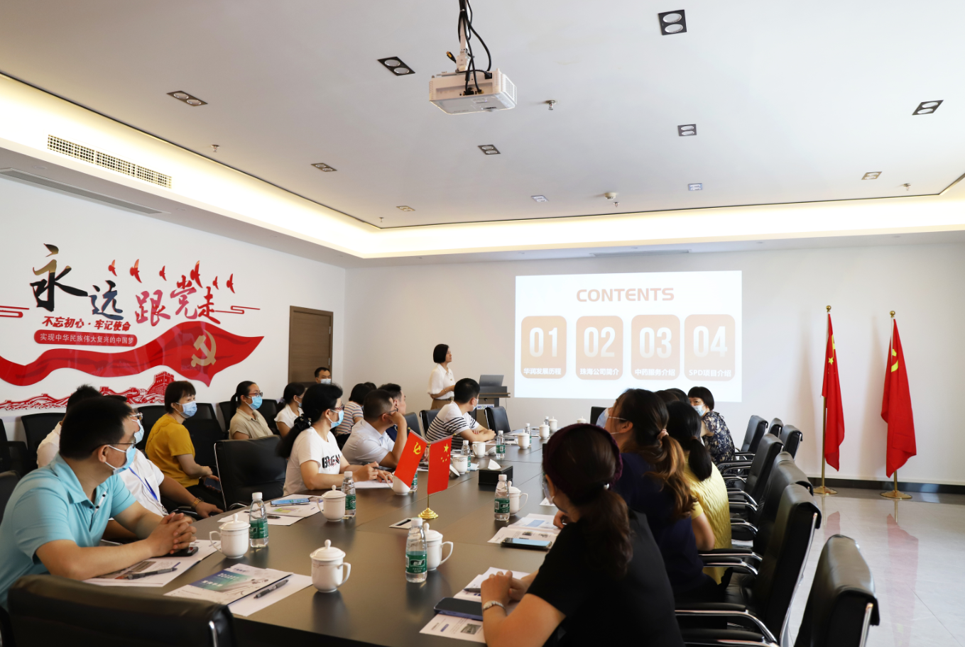 會議伊始,華潤珠海醫(yī)藥總經理柯總對一行領導的調研表示熱烈歡迎。華潤珠海醫(yī)藥副總經理林麗華就華潤發(fā)展歷程、公司簡介等方面進行介紹。呂桂良副局長一行認真聽取了介紹,對華潤珠海醫(yī)藥取得的成績表示肯定,并高度贊揚了華潤珠海醫(yī)藥在珠海市香洲區(qū)“2022.01.13”“2022.07.11”疫情防控阻擊戰(zhàn)中,主動承擔疫情送藥任務,迎“疫”而上,堅決履行紅色央企責任的精神。
