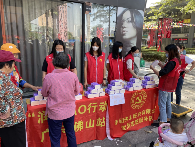 10月21日上午9點,華潤佛山醫(yī)藥有限公司在桂城街道金域藍灣北廣場設(shè)攤開展用藥安全知識宣傳活動?,F(xiàn)場指導小區(qū)居民辨別假藥劣藥和如何看包裝上的產(chǎn)品批號、生產(chǎn)日期和有效期等知識,并用紙巾和小區(qū)居民兌換他們家里的過期藥品,吸引了許多小區(qū)居民參與,受到社區(qū)群眾的歡迎。最后,將過期藥品投放進小區(qū)固定的回收箱,并由尖東社區(qū)工作人員進行分類記錄,確保做到安全綠色回收。