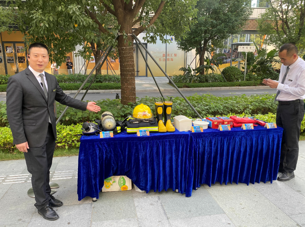 本次消防演練除了疏散實(shí)操外,還請(qǐng)消防專業(yè)人員為大家實(shí)操各類消防設(shè)施設(shè)備的正確操作,如正確佩戴防毒面罩,干粉滅火器的操作演示。