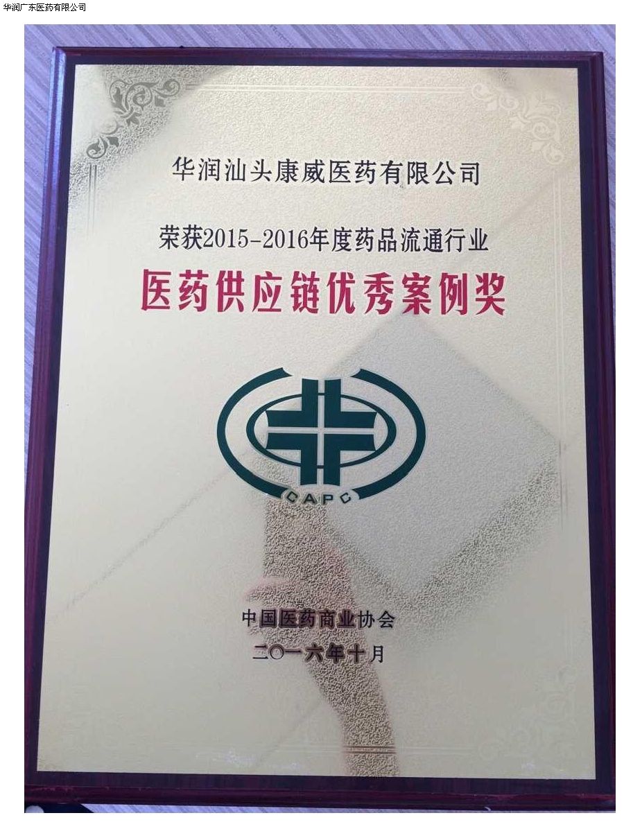 2016年10月,華潤廣東醫(yī)藥有限公司申報的“廣東云醫(yī)院項(xiàng)目”、“廣東省人民醫(yī)院藥品物流智能一體化項(xiàng)目”、“中山大學(xué)附屬第一醫(yī)院藥品物流智能一體化項(xiàng)目”、華潤廣東醫(yī)藥子公司華潤汕頭康威醫(yī)藥有限公司申報的“汕頭市中心醫(yī)院、汕頭大學(xué)第二附屬醫(yī)院藥品物流智能一體化項(xiàng)目”在中國醫(yī)藥商業(yè)協(xié)會醫(yī)藥供應(yīng)鏈分會關(guān)于2015-2016年度醫(yī)藥供應(yīng)鏈優(yōu)秀案例征集評選活動中脫穎而出,分別榮獲兩項(xiàng)醫(yī)藥供應(yīng)鏈服務(wù)創(chuàng)新獎和一項(xiàng)醫(yī)藥供應(yīng)鏈優(yōu)秀案例獎。本次評選活動由中國醫(yī)藥商業(yè)協(xié)會主辦,經(jīng)醫(yī)藥供應(yīng)鏈專家?guī)鞂<掖碓u審、協(xié)會官網(wǎng)及協(xié)會、分會微信公眾平臺公示等程序,最終確認(rèn)獲獎名單。