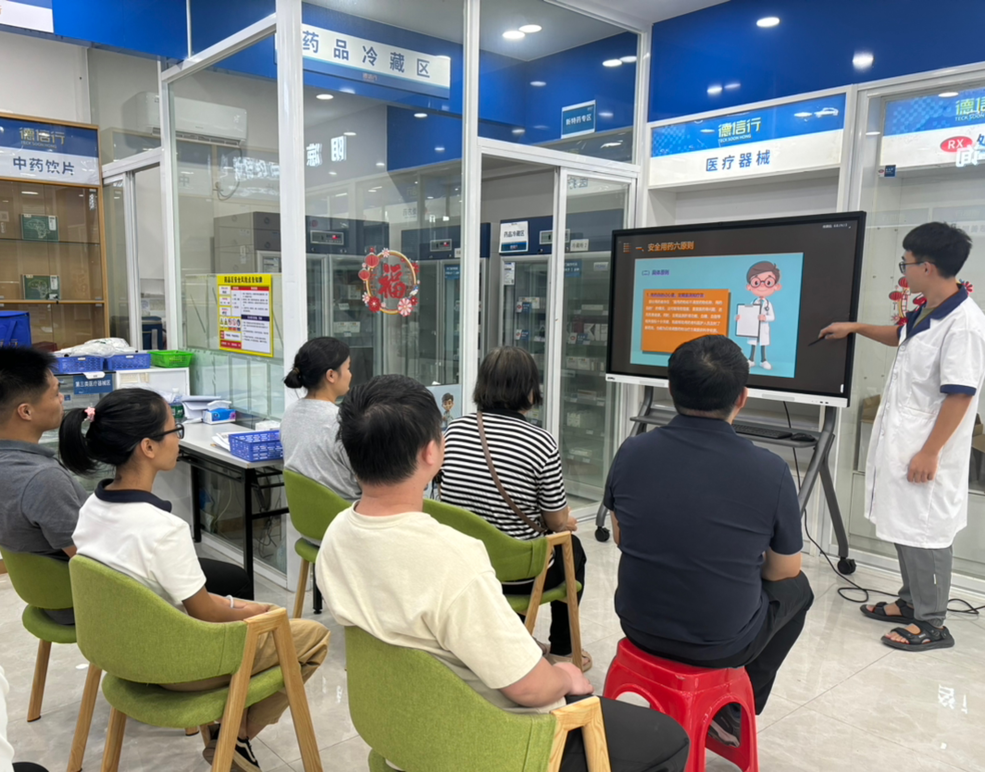 活動現(xiàn)場,東莞人醫(yī)分店店長林劍勇以通俗易懂的語言搭配直觀清晰的圖文課件,圍繞居民日常用藥的核心需求展開講解,內容聚焦安全用藥六原則、服藥“十要十忌”等基礎常識,同時針對社區(qū)中高發(fā)的慢性病,重點解讀高血壓用藥注意事項、口服降糖藥物合理使用方法,還特別提醒了服藥時的禁忌用水(如避免用茶水、牛奶送服等),將專業(yè)醫(yī)藥知識轉化為居民聽得懂、用得上的實用內容。