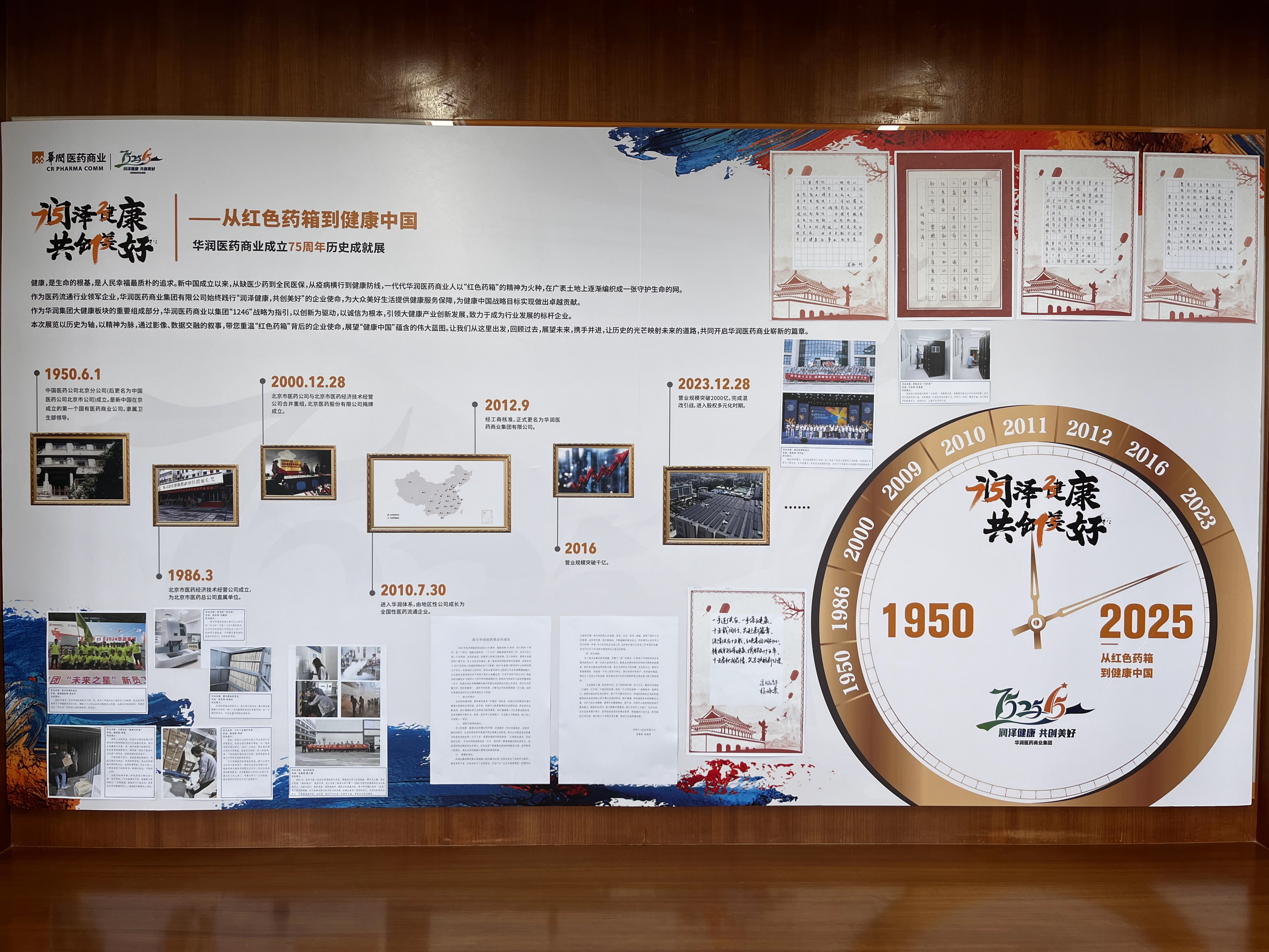 另外,華潤中山醫(yī)藥結合公司現(xiàn)場環(huán)境,制作了《從紅色藥箱到健康中國——華潤醫(yī)藥商業(yè)歷史成就展》,展示內(nèi)容主要記載著華潤醫(yī)藥商業(yè)的“紅色藥箱”背后的企業(yè)使命以及對“健康中國”偉大藍圖的展望。