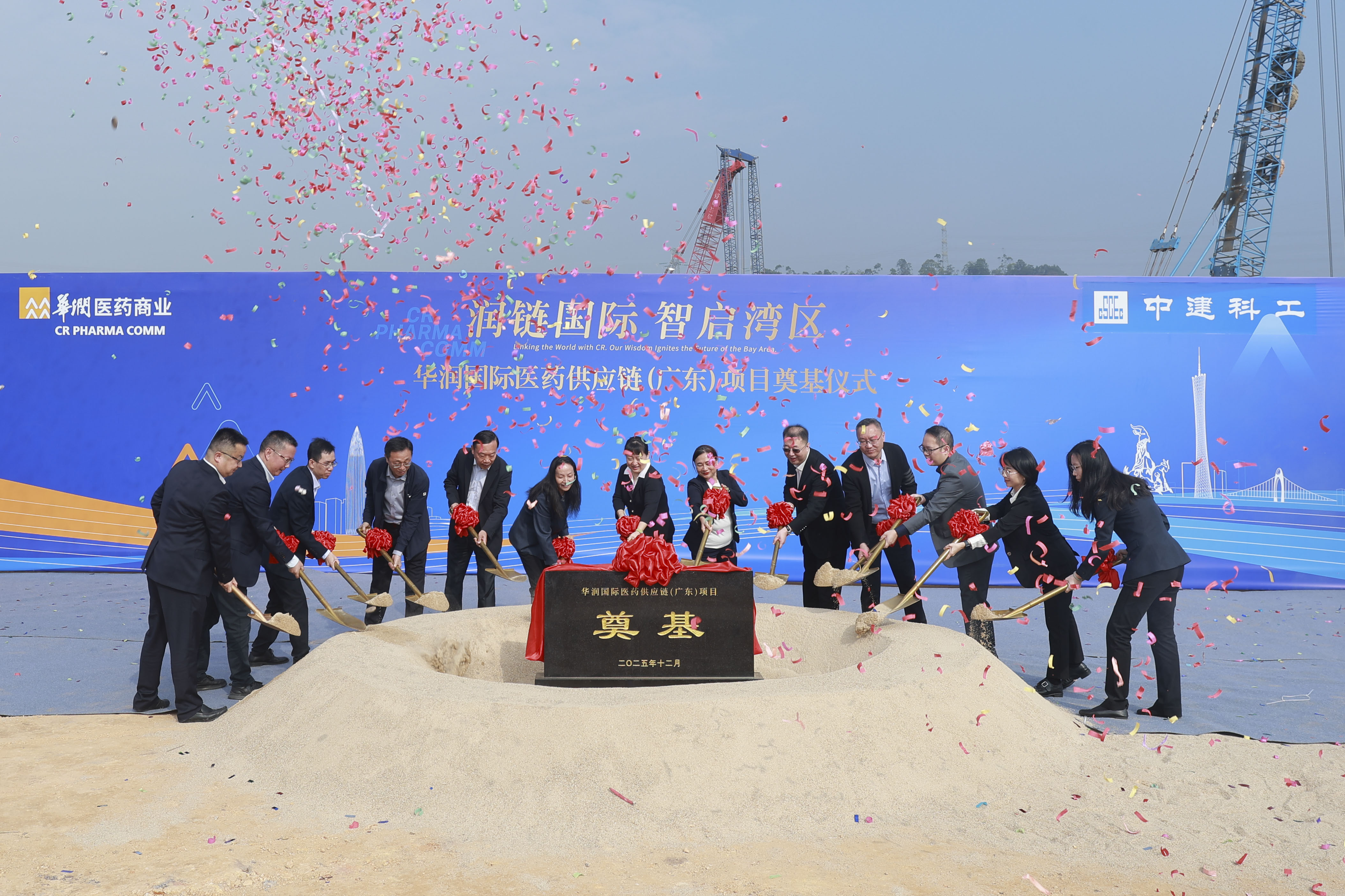 伴隨著熱烈的禮炮聲,華潤醫(yī)藥商業(yè)、華南區(qū)域主要領(lǐng)導(dǎo)共同揮鍬,為項目奠基培土。這一儀式不僅標(biāo)志著項目正式進(jìn)入建設(shè)階段,更象征著各界攜手,共同為灣區(qū)健康產(chǎn)業(yè)夯實了發(fā)展的基石。