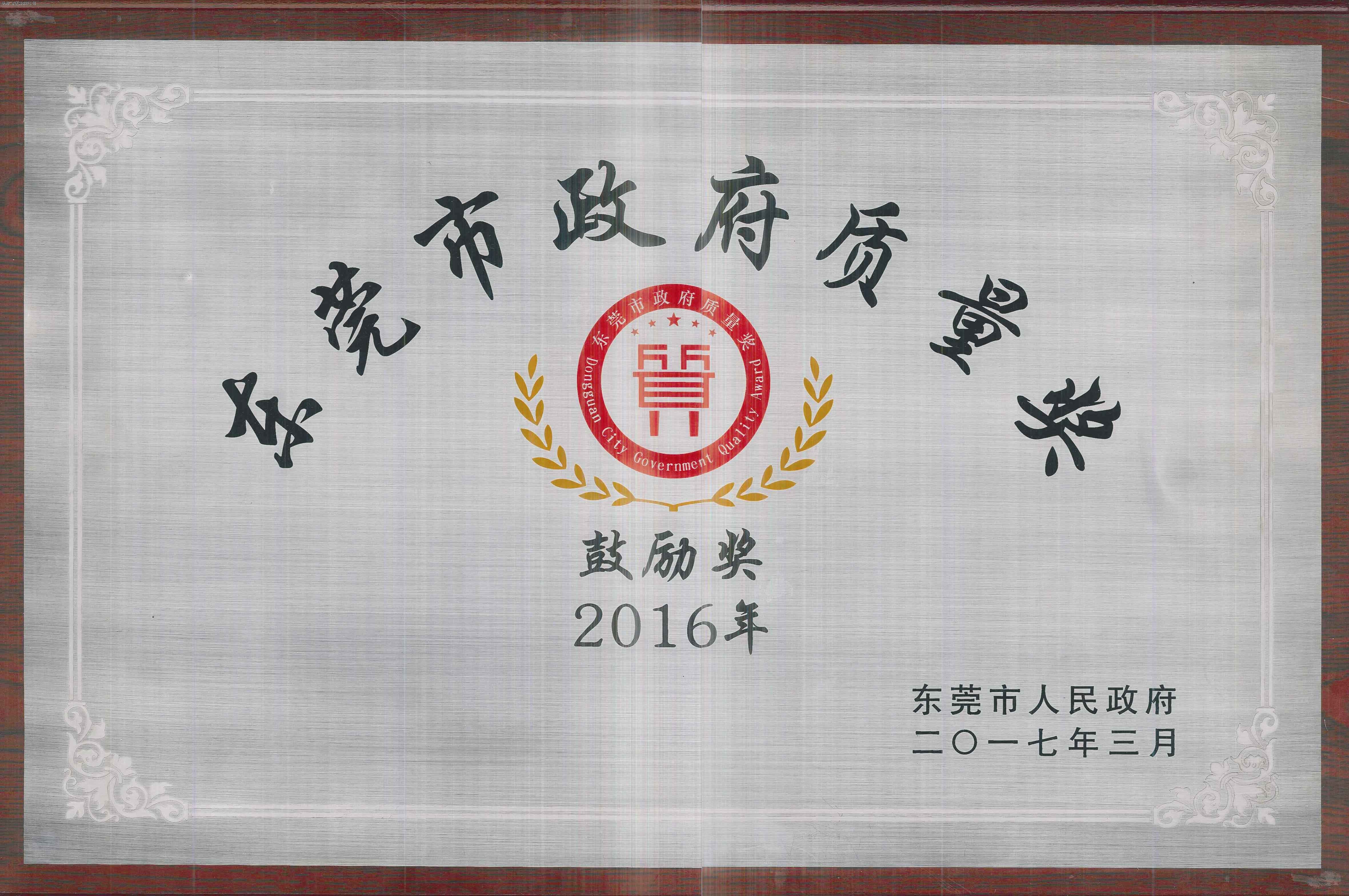 東莞市政府質(zhì)量獎是東莞市人民政府于2009年設(shè)立的最高質(zhì)量獎項,該獎項每兩年評選一次,由東莞市政府批準(zhǔn)、表彰,授予在東莞市登記注冊,質(zhì)量管理成效顯著,產(chǎn)品、服務(wù)和經(jīng)營質(zhì)量、自主創(chuàng)新能力和市場競爭力等在行業(yè)內(nèi)處于領(lǐng)先地位,對東莞市經(jīng)濟(jì)社會發(fā)展作出卓越貢獻(xiàn)的企業(yè)和組織。