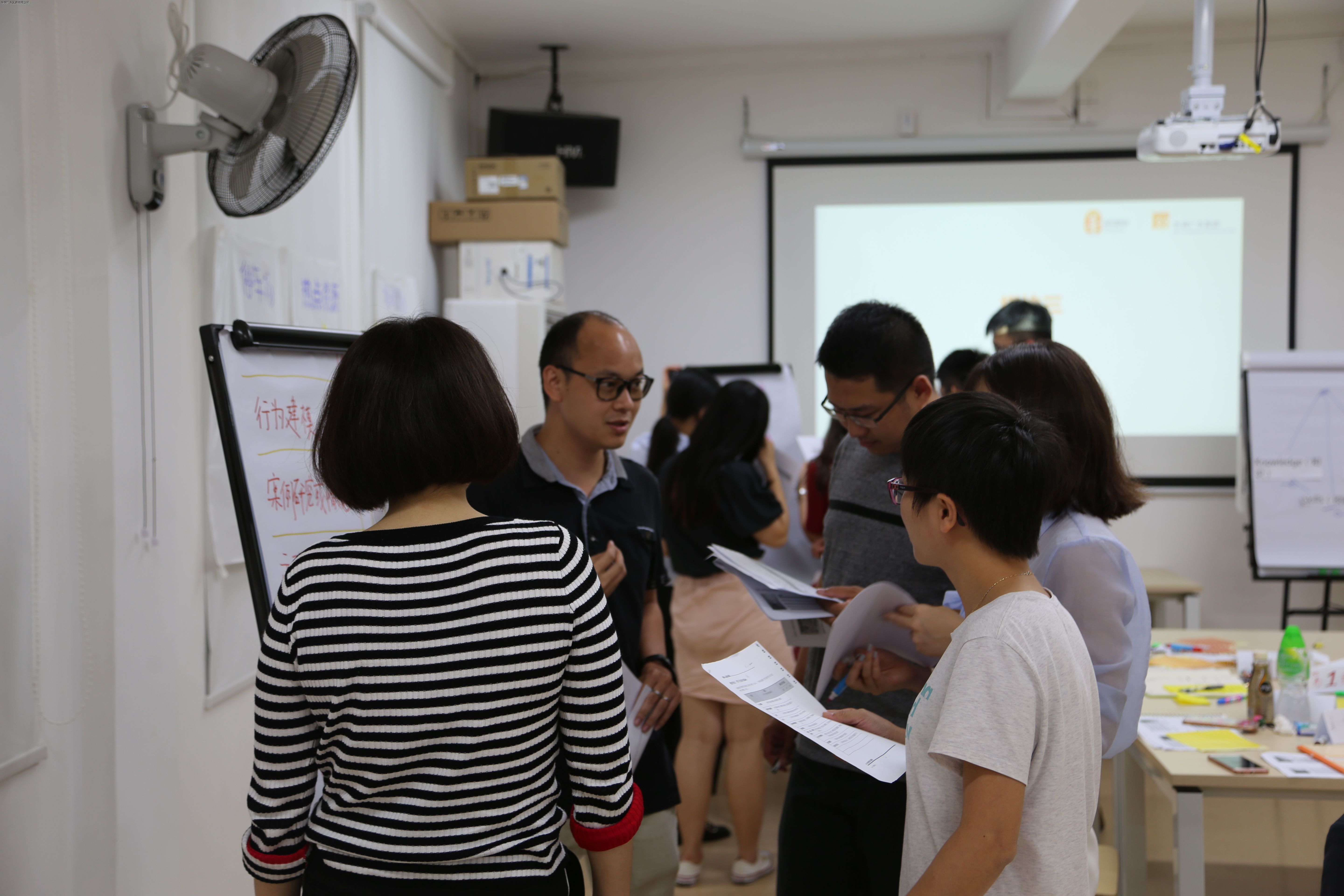 課程中袁國儀講師首先以手繪圖畫墻上掛手繪圖畫的方式營造出視覺化的“課件”氛圍,使用“PUNCH”開場,讓學(xué)員掌握培訓(xùn)中“培訓(xùn)循環(huán)圈”、“自畫像”、,并引出“停車場”、“熱點資源”等關(guān)鍵詞。鄧昊講師則以丟球互問互答、分組計分的方式承上啟下;以小組討論,各組派代表“掛圖漫游”的方式,分析成年人學(xué)習(xí)的區(qū)別,引導(dǎo)學(xué)員使用不同方法表達(dá)“KSA”,讓學(xué)員學(xué)會設(shè)計以學(xué)員為導(dǎo)向的材料和練習(xí)。最后李磊講師“聲情并茂”般地講解如何塑造講師形象,并通過“外星文字”“老鼠鼠老”、“猜猜?lián)淇伺啤薄?4號文件”等趣味游戲引導(dǎo)學(xué)員學(xué)習(xí),和各動物類型的學(xué)員眾生相,讓學(xué)員掌握有效的授課技巧。