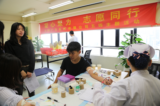 2019年5月10日,“凝心聚力 志愿同行”五四無償獻(xiàn)血活動,在華潤廣東醫(yī)藥有限公司順利舉行。此次活動由廣州血液中心的醫(yī)務(wù)人員們提供獻(xiàn)血服務(wù)支持,共有57位同事成功獻(xiàn)血,合共采集血液15600毫升。