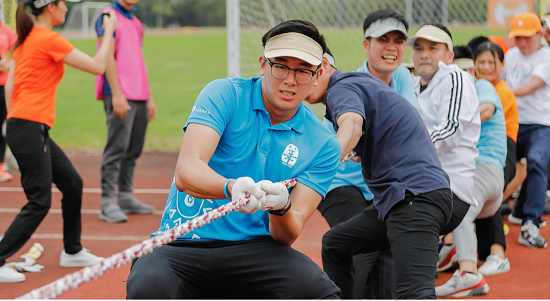 本次運(yùn)動會設(shè)有“華潤接力賽”、“突破新時代”、“奔跑吧華潤人”、“書寫未來”以及“齊心協(xié)力向未來”5個比賽項(xiàng)目。比賽項(xiàng)目環(huán)環(huán)相扣,妙趣橫生。運(yùn)動場上參賽人員你追我趕,你爭我奪,各領(lǐng)風(fēng)騷!運(yùn)動場下觀眾群情激奮,吶喊聲聲聲震耳!