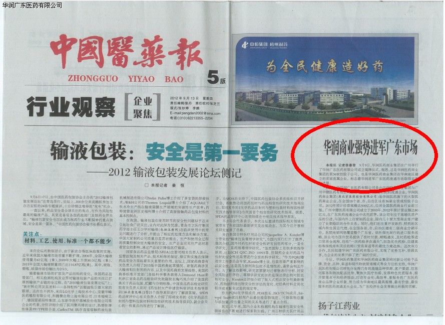 2012年9月9日,華潤醫(yī)藥商業(yè)集團(tuán)、廣東中健醫(yī)藥有限公司合作成功暨華潤廣東醫(yī)藥有限公司成立揭牌慶典在廣州萬達(dá)希爾頓隆重舉行。本次活動受到了華潤集團(tuán)的重視和廣東省政府的關(guān)注與支持,廣東衛(wèi)視、中國醫(yī)藥報(bào)、醫(yī)藥經(jīng)濟(jì)報(bào)、南方日報(bào)、廣州日報(bào)、羊城晚報(bào)等知名媒體前來慶賀并報(bào)道了本次慶典。
