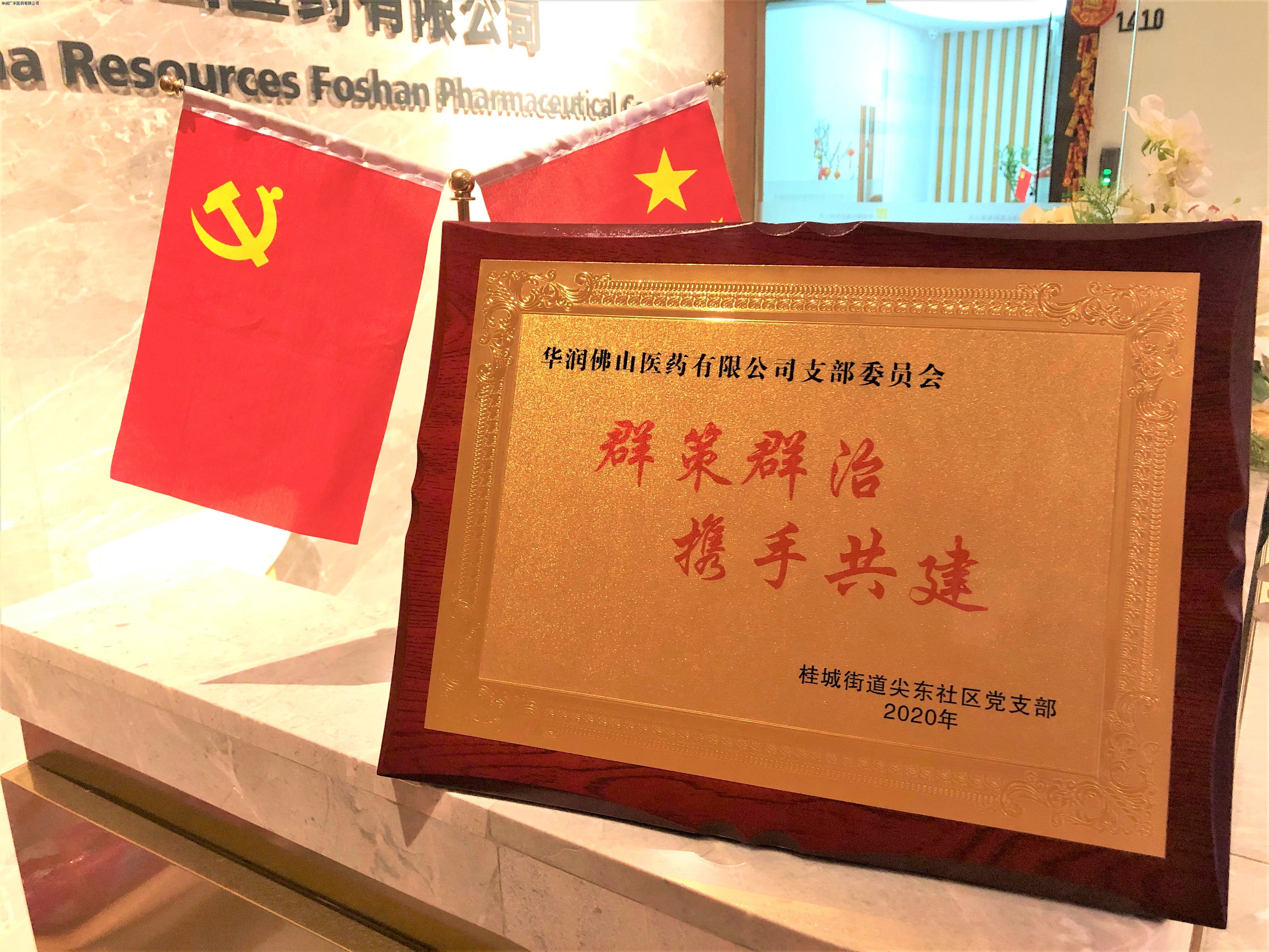 “潤·YAO行動-佛山站”系列活動結束后,11月20日,華潤佛山醫(yī)藥還受邀參加了桂城尖東社區(qū)組織開展的“2020年尖東社區(qū)志愿服務嘉許禮”。嘉許禮上,尖東社區(qū)黨支部為華潤佛山醫(yī)藥頒發(fā)了“群策群治、攜手共建”獎項,并對華潤佛山醫(yī)藥一直以來對社區(qū)做出的貢獻予以肯定和表揚。