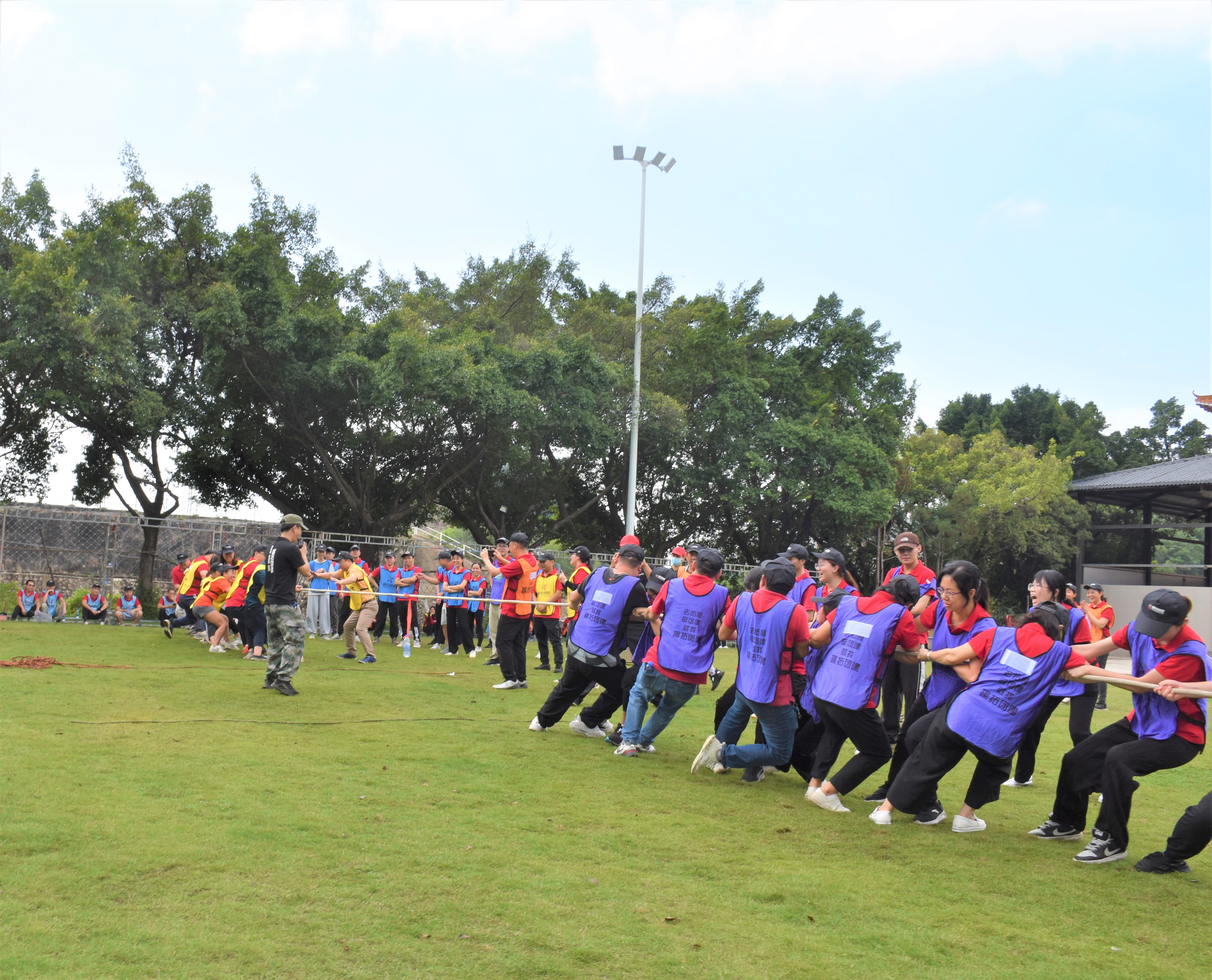 首先進行的是“飛盤運動”,各隊根據(jù)防守輪換的方式,閃躲對方飛盤,存留人數(shù)最多的隊伍獲勝,既鍛煉了隊員的戰(zhàn)術(shù)部署及隨機應(yīng)變能力,又體現(xiàn)了團隊協(xié)同作戰(zhàn)、統(tǒng)一對外的精神。接著是跑男系列游戲 “撕名牌混戰(zhàn)”。游戲前的刺激氛圍,游戲中的同心協(xié)力,聚焦目標,消除了彼此隔閡,助燃斗志。最后隆重登場的是“拔河大賽”,為了團隊的榮譽,大家都擰成一股繩,蓄勢待發(fā),奮力一搏。