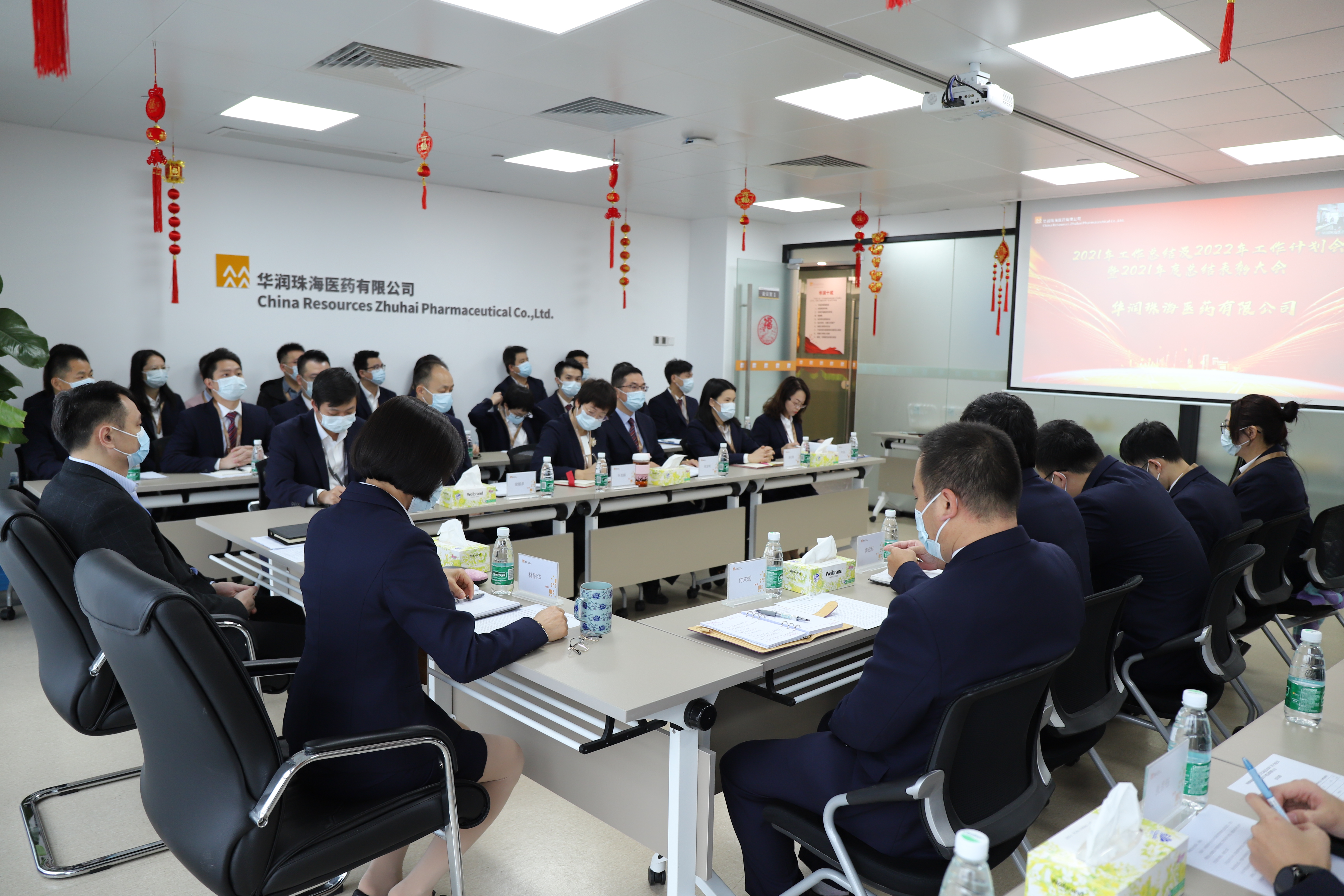 丑去寅來騰錦繡,牛歸虎到競輝煌!揮別2021,喜迎2022。2022年1月14日14:00華潤珠海醫(yī)藥有限公司在公司會議室隆重舉行2021年工作總結(jié)及2022年工作計劃大會暨2021年總結(jié)表彰大會,公司管理團隊及各部門負責人、采銷人員及優(yōu)秀員工參加會議,華潤廣東醫(yī)藥醫(yī)院銷售部高級總監(jiān)兼華潤珠海醫(yī)藥監(jiān)事伍總監(jiān)線上參會。